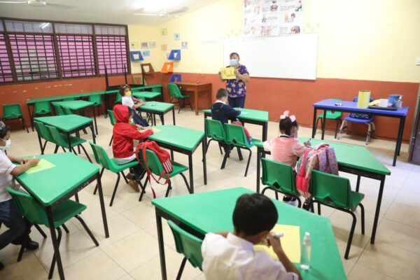 Mérida, Yucatán, 6 de septiembre de 2021.- Con todas las medidas y protocolos sanitarios, estudiantes yucatecos regresaron este lunes a las aulas después de 18 meses de ausencia debido a la pandemia del Coronavirus, por lo que las actividades presenciales se retomaron en las escuelas públicas de todo el estado.