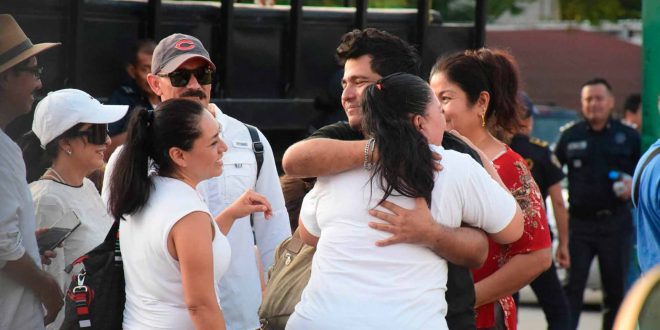 Enmedio de una gran expectativa, los trabajadores llegaron en una camioneta de 3 toneladas y luego caminaron hasta las instalaciones de la Secretaría de Seguridad Pública estatal, donde sus familiares esperaban respuesta de las autoridades, lo que, sin planearlo, propició un emotivo reencuentro.
