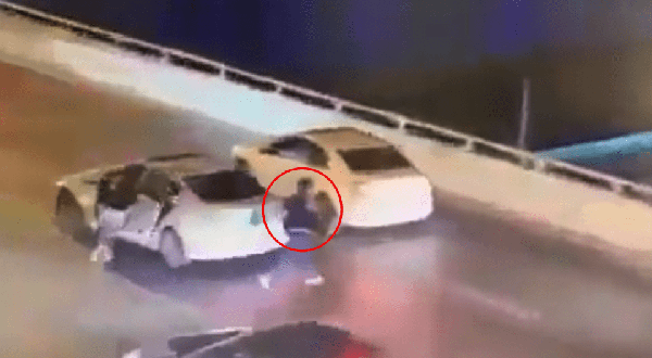 En un video que fue publicado en Twitter, puede verse a un auto que se encuentra inmóvil sobre la vialidad. Algo ocurre en el interior, son un joven y su madre quienes mantienen una discursión verbal. De repente, el joven sale desde una de las puertas del automóvil y corre con rumbo firme hacia el suicidio. La madré corre detrás de él, pero le es imposible alcanzarlo.