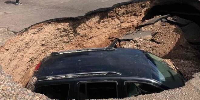 🚧🕳Nuevo #socavón en #Sonora se traga camioneta en Ciudad obregón😧; al menos 6 metros de ancho y 3 de profundidad tiene este fenómeno geológico que se formó preliminarmente a causa de la intensa lluvia.#Viral #Noticias #Estados #Enterate pic.twitter.com/JMgndAGIhk
