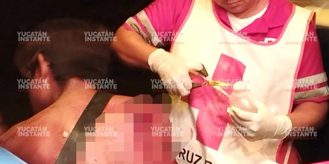 Al final paramédicos de la ambulancia Yuc-010 de la Cruz Roja vendaron el corte de entre 8 a 10 centímetros a la altura del omóplato.