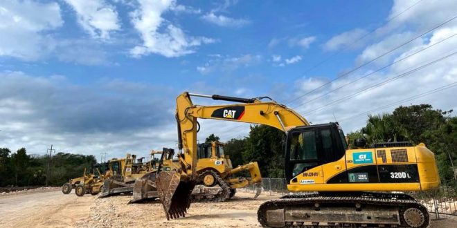 Novedades Yucatán documentó las obras aledañas al poblado de Maxcanú como excavaciones de material rocoso, avance en la construcción de pasos viales y acarreo del producto de las mismas perforaciones.