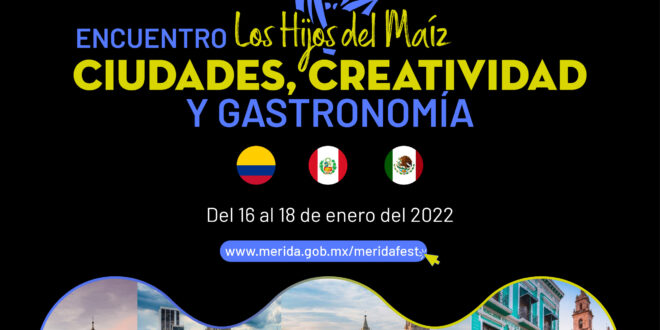 Mérida, Yucatán a 12 de enero de 2022.- Mérida es una ciudad del sabor y del saber, por lo que la edición 2022 del Mérida Fest contará con el Encuentro Internacional “Los Hijos del Maíz. Ciudades, Creatividad y Gastronomía”, que se realizará del 16 al 18 de enero, con la participación de expertos e investigadores de Colombia, Perú y México.