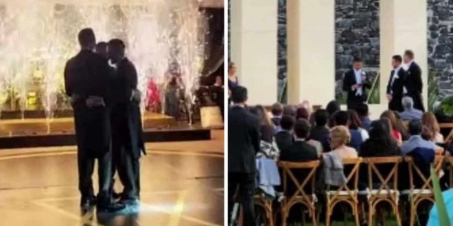 En Aguascalientes se celebró una boda inédita: tres hombres se unión en matrimonio poliamoroso. Las imágenes de la ceremonia han sido ampliamente comentadas en redes sociales.