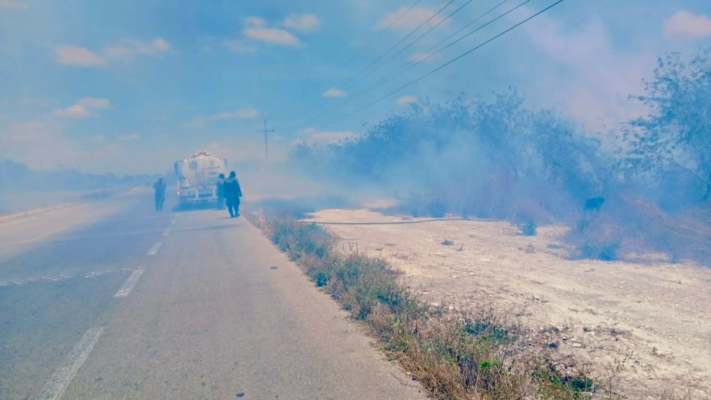Se tuvo conocimiento del primer incendio alrededor de las 11:25 horas en un tramo de la carretera Acanceh-Chetumal, a la altura de unas bodegas industriales. Esta noche se reporta que está controlado.