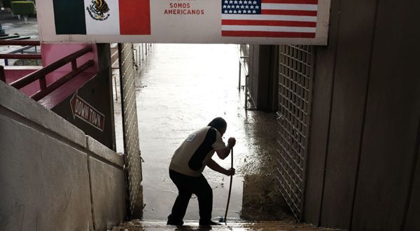 TIJUANA, MEXICO - JANUARY 18: A man cleans stairs next to a walkway that leads to the United States on January 18, 2019 in Tijuana, Mexico. Tijuana has experienced a surge in Central Americans seeking to cross the border into America. The U.S. government is partially shut down as President Trump is asking for $5.7 billion to build additional walls along the U.S.-Mexico border and the Democrats oppose the idea. (Photo by Spencer Platt/Getty Images) (Photo by Spencer Platt/Getty Images)