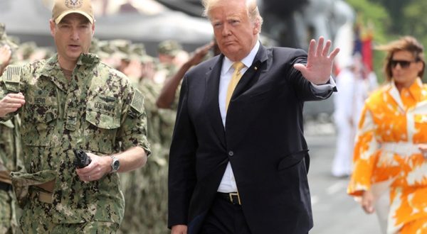 En el último día de su visita a Japón, y en compañía del primer ministro japonés, Shinzo Abe, el presidente Trump se reunió con la Fuerza de Autodefensa Marítima de Japón en la cubierta del destructor Kaga, anclado en la base naval de Yokosuka, al sur de Tokio.