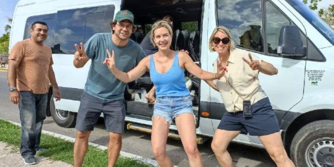Los visitantes belgas llegaron en una camioneta de la agencia de viajes “Viajes del Mundo”, transporte que los llevará a los lugares previamente seleccionados y pagados.