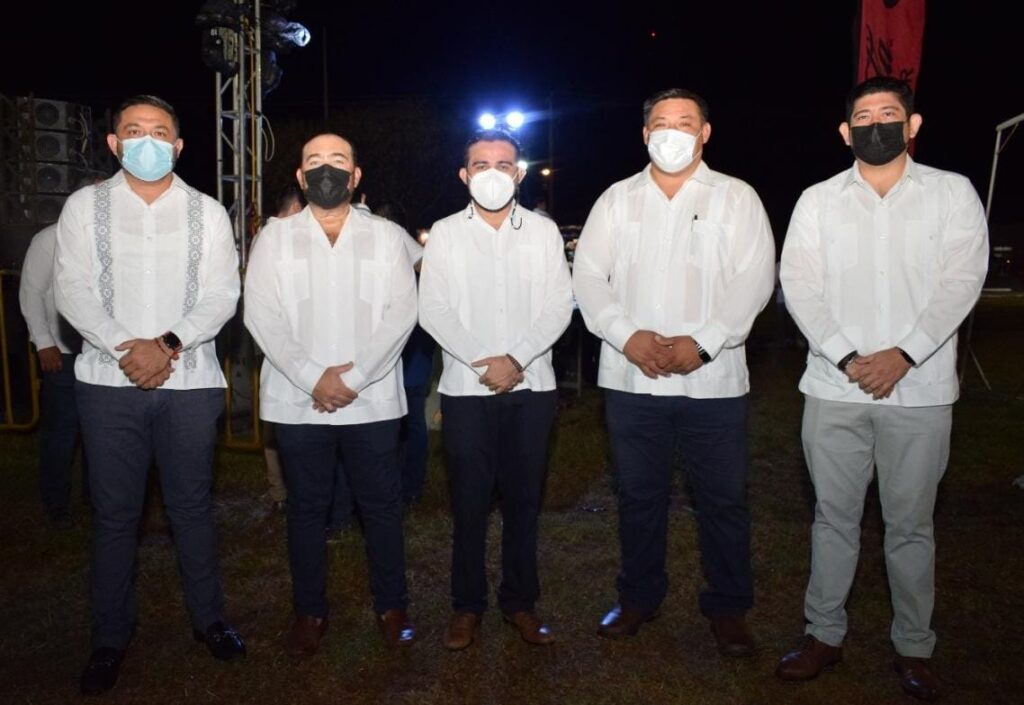 Mérida, Yucatán, a 22 de abril de 2022.– Con las expectativas puestas de que Umán se consolide como un referente en el sureste, anoche se inauguró la primera edición de la Expo Feria de la Ciudad Capital de las Industrias a cargo del alcalde Gaspar Ventura Cisneros Polanco; el director de Promoción y Participación Social de la Secretaría de Desarrollo Social (Sedesol), José Gonzalo Puerto González, en representación del gobernador Mauricio Vila Dosal, y el director general de Backstage Entertainment & Shows, Humberto Rodríguez Lugo.