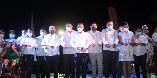Mérida, Yucatán, a 22 de abril de 2022.– Con las expectativas puestas de que Umán se consolide como un referente en el sureste, anoche se inauguró la primera edición de la Expo Feria de la Ciudad Capital de las Industrias a cargo del alcalde Gaspar Ventura Cisneros Polanco; el director de Promoción y Participación Social de la Secretaría de Desarrollo Social (Sedesol), José Gonzalo Puerto González, en representación del gobernador Mauricio Vila Dosal, y el director general de Backstage Entertainment & Shows, Humberto Rodríguez Lugo.