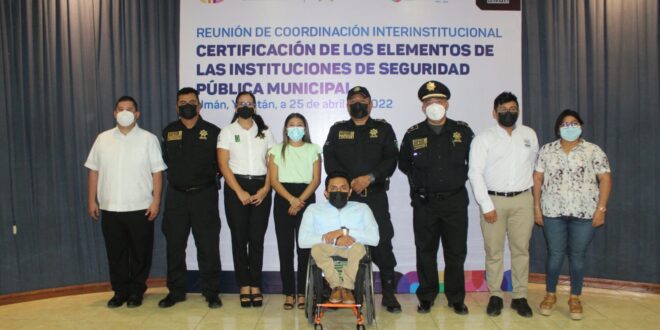 UMÁN, Yuc., 26 de abril 2022.- Realizan en Umán reunión de Coordinación Interinstitucional para la Certificación de los Elementos de las Instituciones de Seguridad Pública Municipal con los municipios que integran la zona 3.