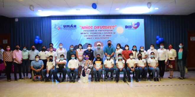 Umán, Yucatán a 23 de octubre de 2021.- Con la intención de fomentar espacios de participación de niños y adolescentes como ciudadanos sujetos de derechos, el Sistema DIF Municipal de Umán, llevó a cabo la toma de protesta de los integrantes de la Red de DIFusores de los Derechos de las Niñas, Niños y Adolescentes Municipal.