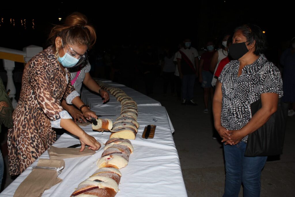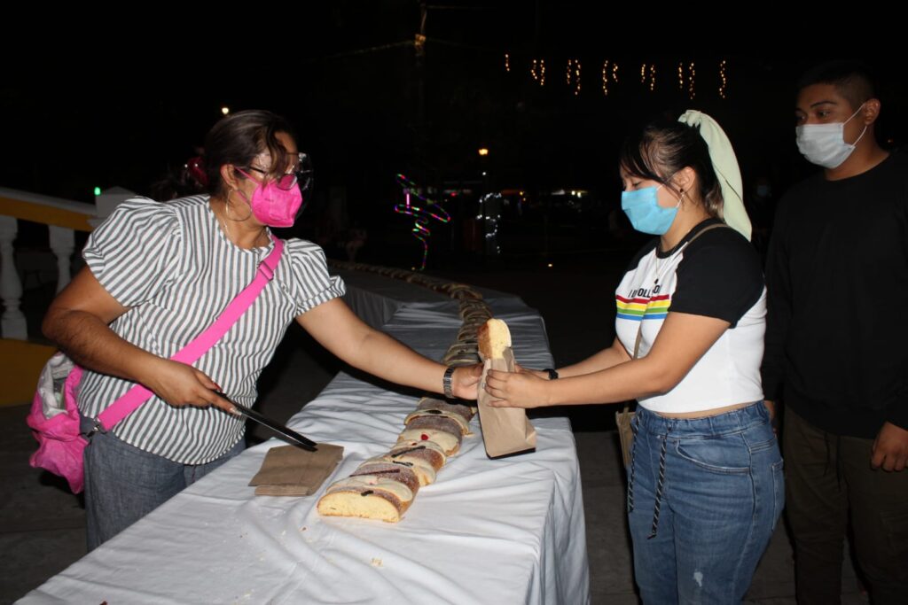 Con una extensión de 50 metros, se llevó a cabo la tradicional Rosca de Reyes organizada por la Dirección de Cultura, con un costo simbólico para los asistentes de $10.00 para destinar para uso del DIF municipal. Cabe destacar que la participación de los asistentes fue regulada además con el tiempo, pues se dispuso como medida de control para prevenir contagios el corte de 7:00 a 8:30 de la noche.