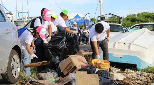 Progreso, Yucatán a 26 de octubre de 2019. Personal de la dirección de Desarrollo Social, a cargo de Dianela Núñez Castro, y de la empresa YZA se sumaron esta mañana para realizar una jornada de limpieza en el refugio pesquero La Caleta, durante ésta autoridades exhortaron a los voluntarios a transmitir a más personas el mensaje sobre cuán importante es poner en práctica pequeñas acciones ecológicas.