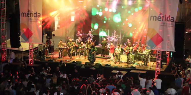La Plaza Grande tuvo dos momentos especiales: la presentación de la compañía Circo Dragón, que cautivó por la danza área, acrobacias y una historia navideña con música de la época y a la media noche los arreglos musicales del concierto “I & I Sinfónico”, donde prevaleció el reggae wayé. “Llevamos toda una vida dedicada a la música y que mejor que tener al maestro Russell Montañez con la Orquesta de Cámara de Mérida”, agradeció Rasta Luis, vocalista de la banda, para luego ofrecer temas como “¿A qué sabe?”, “México Jahming”, “Freedom Fighters”, “Sofi aprendiendo a nadar” y “A la orilla”, entre otros; concierto con el cual grupo celebró también su vigésimo aniversario.