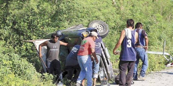 Lepan, Tecoh, Yuc..- Una persona fallecida camino al hospital y tres herreros más lesionados fue el saldo de aparatosa volcadura de camioneta tras una falla mecánica, registrada a la altura del entronque de entrada a la comisaría de Lepán, en el tramo Tecoh-Telchaquillo.