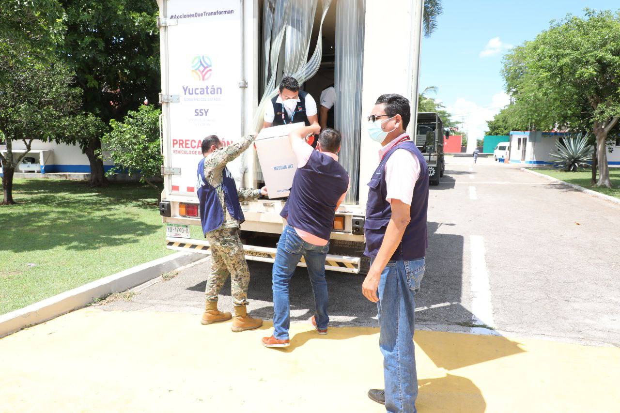Acompañado del coordinador Estatal para la Vacunación Covid-19, capitán de Corbeta, Carlos Gómez Montes de Oca, Díaz Sánchez constató la descarga del lote a cargo del personal del Ejército, el cual fue colocado en un camión thermoking de la SSY, para luego ser trasladadas al almacén estatal de vacunas, desde donde se distribuirán a los lugares donde se aplicarán.