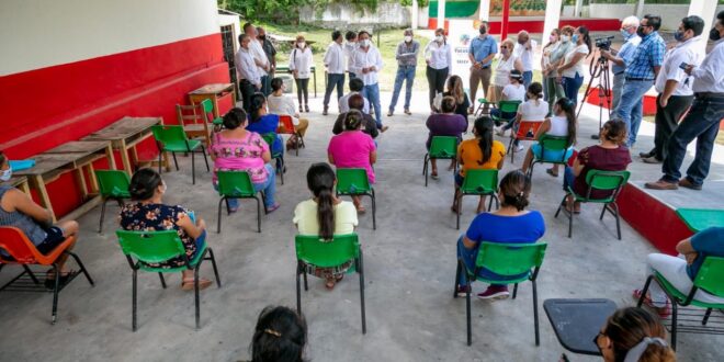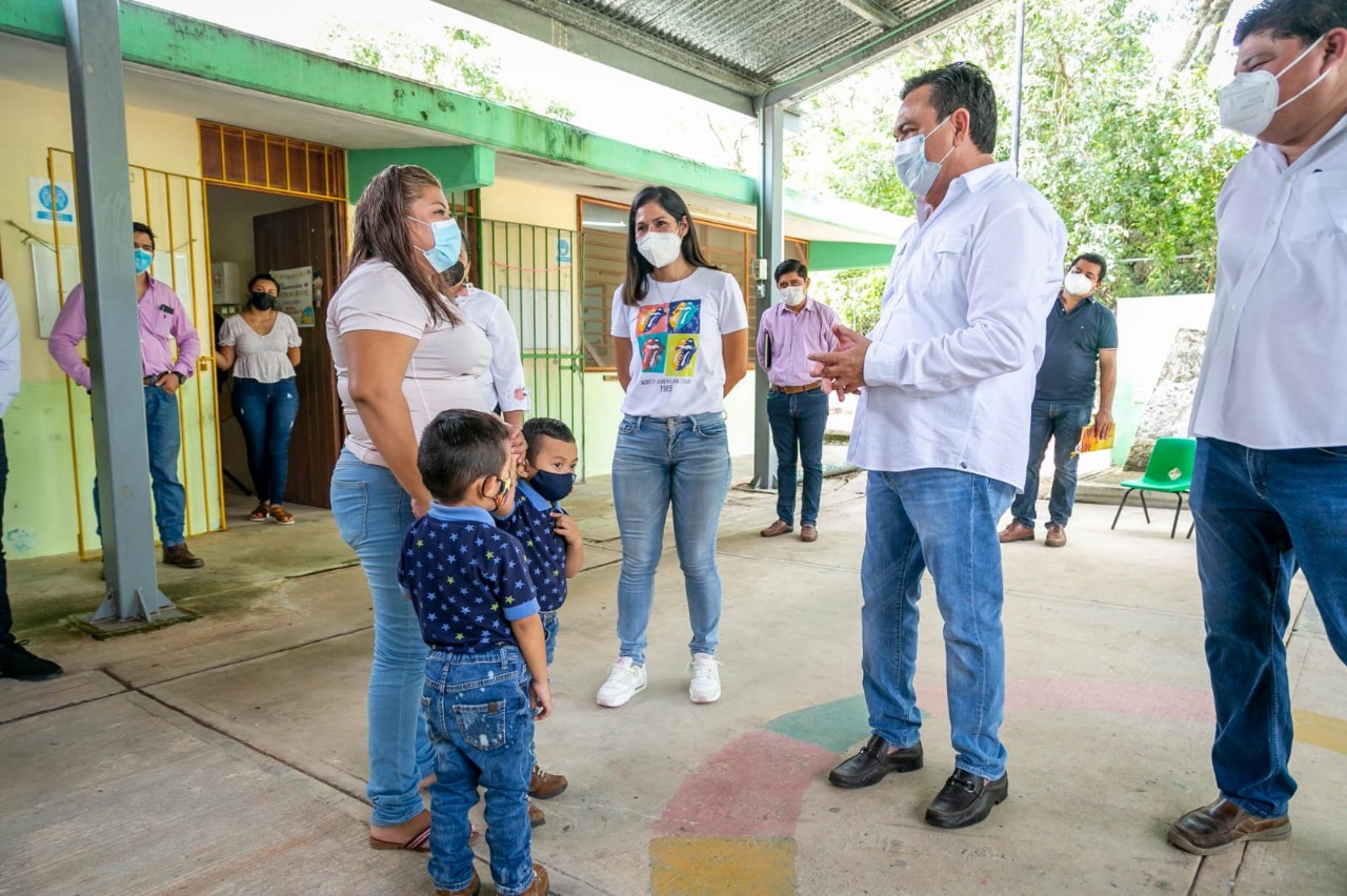 Vidal Aguilar, acompañado por representantes sindicales y del director del Instituto para el Desarrollo y Certificación de la Infraestructura Física, Educativa y Eléctrica de Yucatán (Idefeey), Luis Jorge Montalvo Duarte, visitó el preescolar indígena “Felipe Carrillo Puerto”, el jardín de niños “Narciso Bassols García” y la primaria “Jesús Reyes Heroles”, donde platicó con jefes de sector, supervisores, directores, docentes, padres de familia y el alcalde de Tecoh, Joel Achach Díaz, sobre el protocolo de regreso seguro a clases.