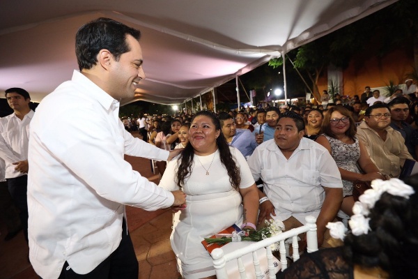 -El Gobernador Mauricio Vila Dosal atestiguó la boda colectiva y asegura que con este acto se fortalecen los valores de las familias yucatecas, lo que propicia que el estado se distinga por ser seguro y tranquilo.