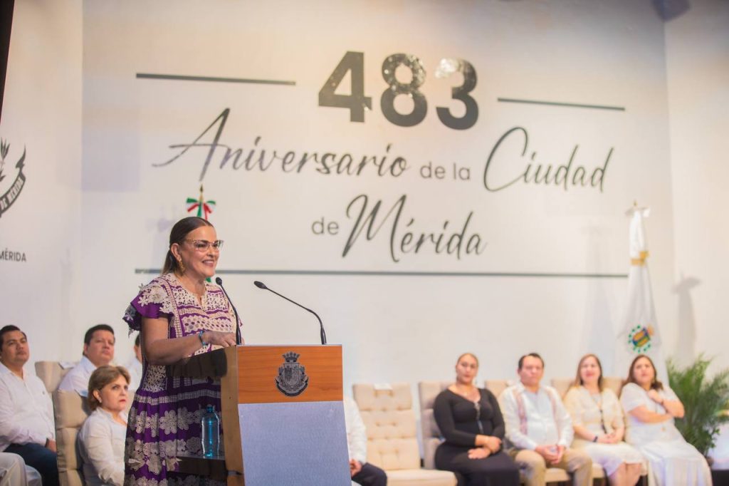 La celebración de la fundación de Mérida es un momento para recordar la historia y el legado de la ciudad, y para reflexionar sobre el futuro que queremos construir juntos y juntas, añadió durante la ceremonia en la que estuvo acompañada del Gobernador del Estado, Joaquín Díaz Mena.