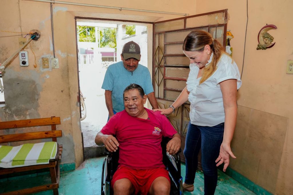 Posteriormente Cecilia acudió al domicilio de José Felipe Chan en la colonia Melitón Salazar para llevarle una silla de ruedas con la que sus cuidadores le darán mejor atención debido a que sufrió una embolia que afectó su motricidad.