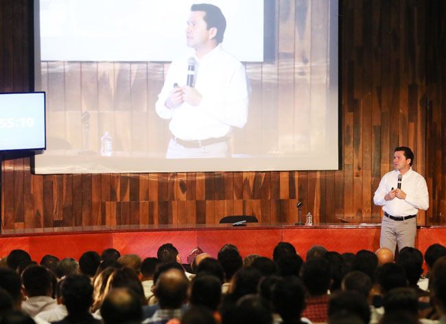 En sesenta minutos de exposición abordó propuestas relacionadas con la educación, salud, economía, transporte, transparencia y combate a la corrupción basadas en su proyecto “Yucatán Primero”.