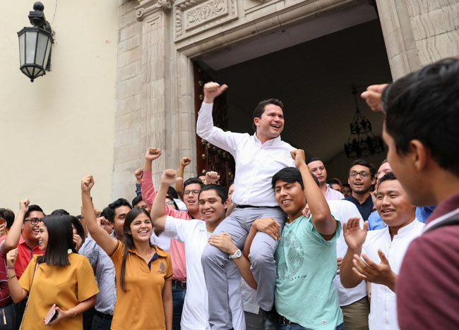 También se comprometió a concluir el Centro Cultural Universitario en el edificio central de la UADY e integrarlo a su propuesta Distrito Capital, pero sobre todo apostarle decididamente a la capacitación de capital humano y a la vinculación de universitarios con los polos de innovación y nuevas tecnologías.