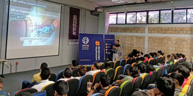 Ucú, Yucatán, a 11 de agosto de 2025.- Con el objetivo de fortalecer la visión innovadora y el compromiso de sus estudiantes con el futuro, la Universidad Politécnica de Yucatán (UPY) ofreció la conferencia magistral del especialista en robótica industrial y reconocimiento global, Luis Alberto Muñoz Ubando, encuentro que brindó a las y los alumnos herramientas de vanguardia y contacto directo con referentes internacionales en tecnología.