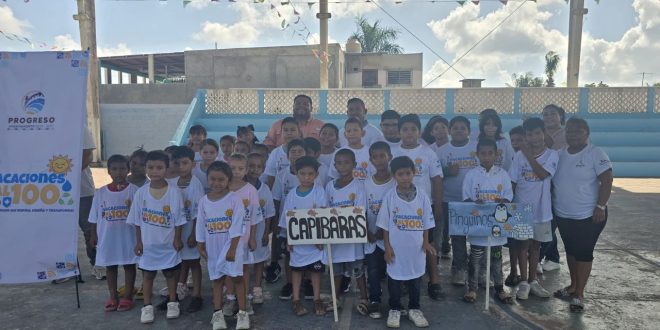 Progreso, Yucatán, a 27 de agosto de 2025.-Este miércoles concluyó en la comisaría de Flamboyanes el programa “Vacaciones al 100”, impulsado por el Ayuntamiento de Progreso, el cual brindó a más de 180 niñas y niños de las seis comisarías actividades recreativas, educativas y deportivas.