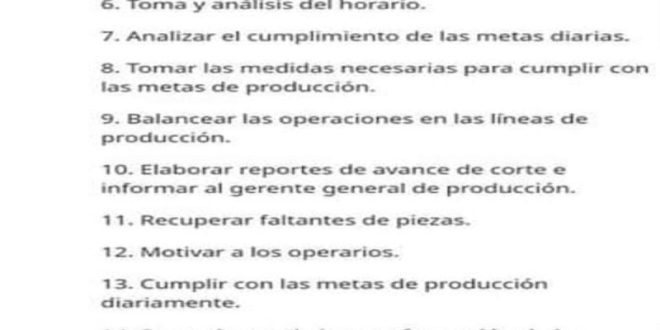 • Cumplir con las metas de producción