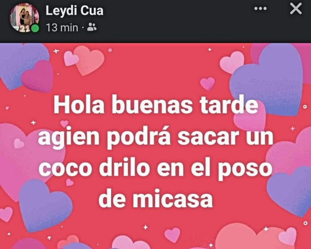 El primer reporte se trato de doña Leydi Cua, la cual tiene su morada por la calle 24 con 15 de dicha colonia, pidiendo ayuda a sus amigos en las redes sociales que dentro su pozo había un cocodrilo, por lo que al llegar los agentes de la Policía Municipal solicitaron a los bomberos para el rescate del animal. Y si se trató de un reptil, de una enorme iguana y no de un saurio como se había mencionado al principio. Por lo que los elementos estatales procedieron a soltar en montes de esta región.