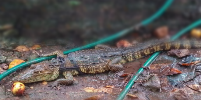 Los hechos fueron registrados durante la tarde de hoy; viernes 28 de julio, cuando un pequeño lagarto, aparentemente en cautiverio, fue descubierto deambulando en patios de las casas locales.