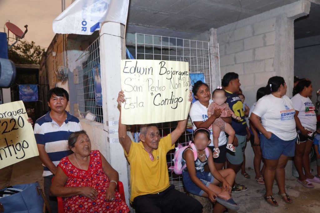 De nueva cuenta, el candidato panista estuvo acompañado de su esposa Raquel Balam Rocha de Bojórquez, así como del candidato a diputado local por el Distrito X, Diego Cardós Rodríguez. En todo momento el numeroso grupo estuvo animado en todo momento por la batucada y porras a favor de Edwin Bojórquez.
