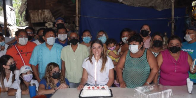 MÉRIDA, Yuc., 25 de marzo 2022.- Desde los primeros minutos de este viernes, en el que la legisladora celebraba su cumpleaños, vecinos de la Emiliano Zapata Sur II y III le organizaron un festejo que incluyó dotación de papadzules y pastel para todos los presentes, en agradecimiento por estar siempre al pendiente del comedor infantil comunitario, a cargo de la señora Wilma Garrido.