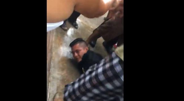 Rápidamente los colonos del sur de Mérida se fueron contra el alcoholizado agente , pero para su suerte fue auxiliado por sus compañeros quienes lo subieron a una patrulla y en posteriormente trasladado a la FGE.