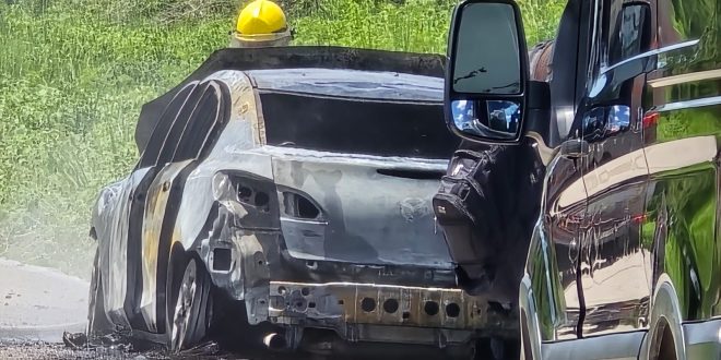 Kinchil, Yucatán, 9 de septiembre. Poco antes del mediodía, un vehículo Mazda quedó reducido a cenizas tras incendiarse en plena carretera Kinchil–Celestún, a la altura del kilómetro 68+500, a escaso kilómetro del entronque hacia Chunchucmil.