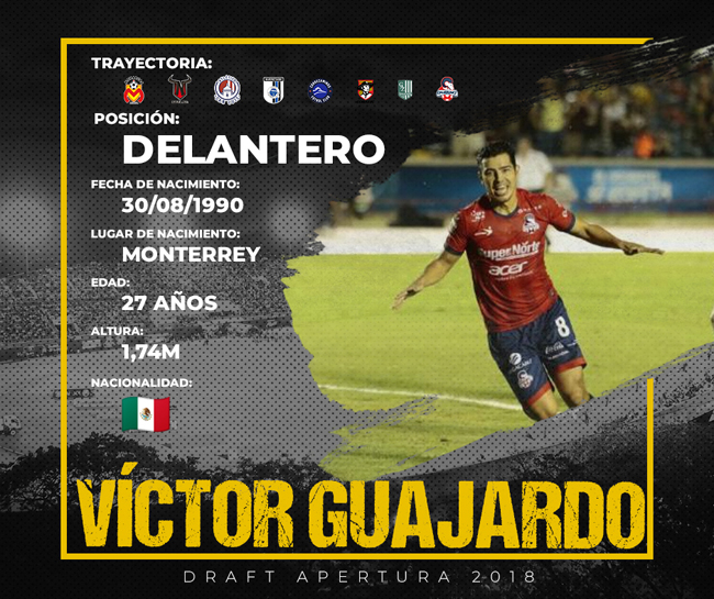 Debutó en el máximo circuito con Monarcas Morelia y ahora defenderá los colores de Yucatán: Víctor Guajardo se suma al trabajo ciervo para el Apertura 2018 y proviene de Cimarrones de Sonora donde fue un mediocampista con regularidad y gol.