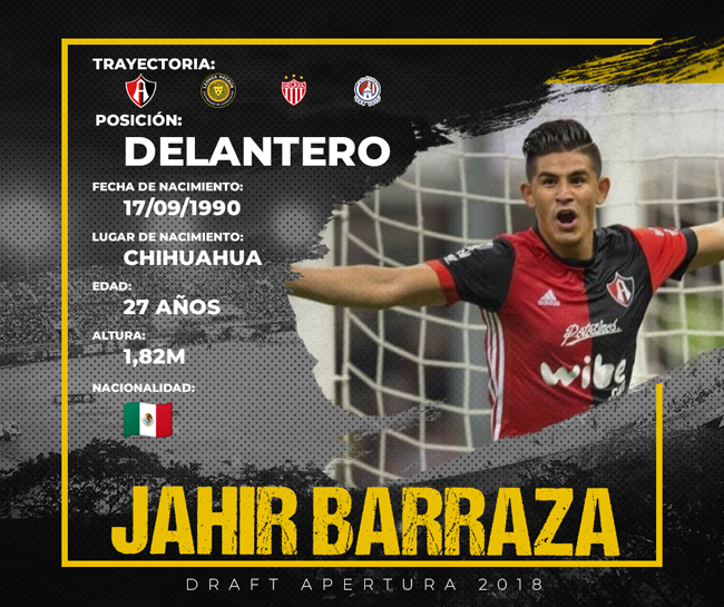 Jahir Alejandro Barraza Flores, ariete con experiencia y gol en primera división, debutó con los rojinegros del Atlas el 16 de abril de 2011 bajo el mando del director técnico Benjamín Galindo en un partido contra Pachuca que finalizó 1-2 a favor de los tapatíos y ahora será el encargado de apuntalar el ataque yucateco.