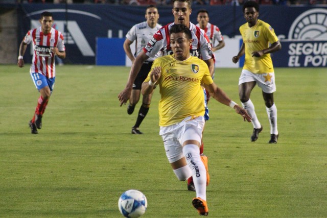 El pelotazo inicial correspondió a los rojiblancos sanluisinos. Un peloteo que terminó en la cancha astada y bajo el control del capitán Aldo Polo que lanzó un pase largo que Víctor Guajardo no pudo alcanzar, pero que sirvió de alarma para los anfitriones.