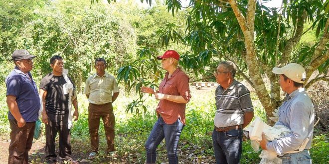 Acompañada por los productores locales Manuel Cetz y Manuel Castro, en su visita a Chankom, Verónica Camino expuso que el Gobierno Federal tiene actualmente en operación el programa Precio Fijo de Garantía, por medio del cual se pretende impulsar la producción de alimentos básicos y fortalecer la economía de los pequeños productores del campo.