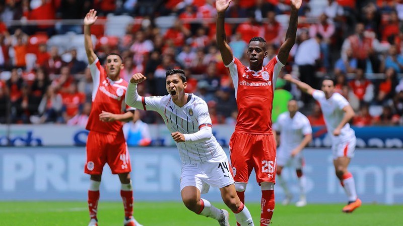 Iniciado el segundo tiempo llegó la ventaja rojiblanca cuando Alan Pulido filtró el balón para Brizuela y el Conejito mandó un centro para Zaldívar, quien de cabeza logró el 1-2. Todo en una triangulación perfecta.