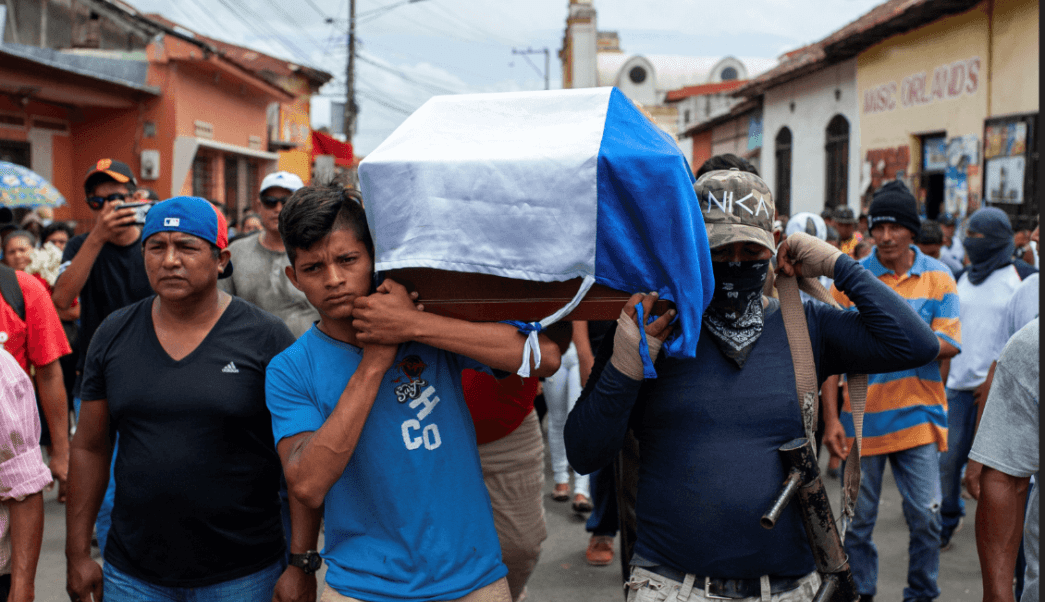 Familiares despidieron a Gerald Vásquez, estudiante de la Universidad Nacional Autónoma de Nicaragua que falleció el fin de semana cuando paramilitares atacaron a un grupo de personas refugiadas en la iglesia de Managua.
