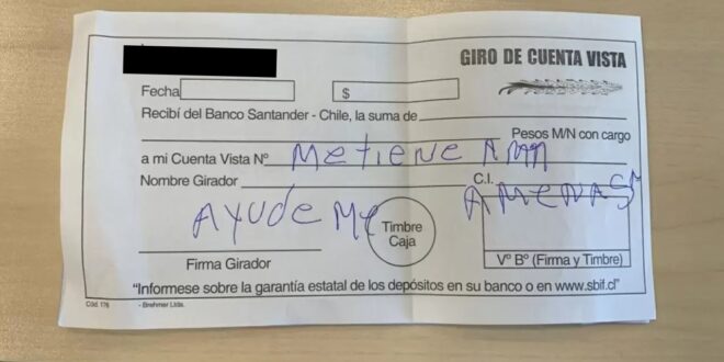Un secuestrador fue detenido en Chile cuando su víctima pidió ayuda en una sucursal de banco a través de un mensaje escrito en un formulario. “Me tienen amenazado. Ayúdeme”, decía el mensaje que desembocó en su liberación.