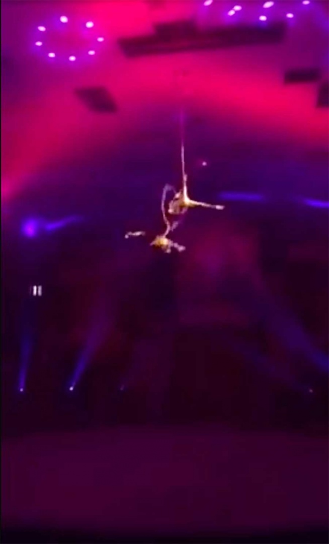 Un acróbata cayó de una altura de siete metros durante un malogrado espectáculo circense en Rusia.