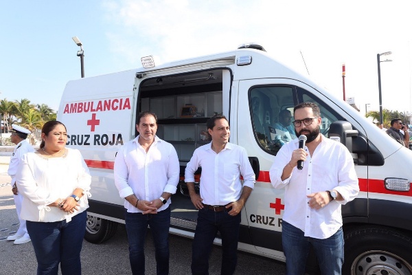-En ese marco, Vila Dosal atestiguó la entrega de una ambulancia por parte del empresario Rodrigo Rosas Cantillo al Ayuntamiento progreseño.