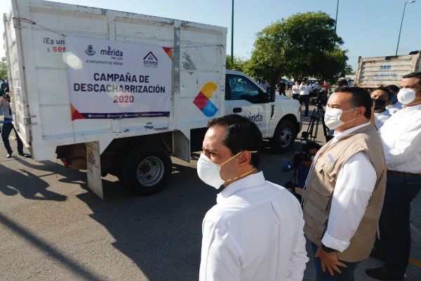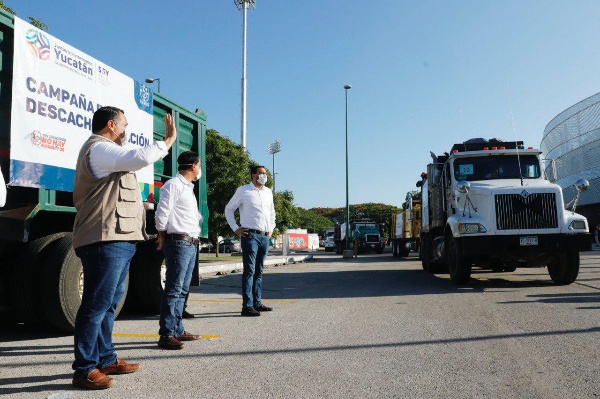 A su vez, el alcalde Renán Barrera Concha informó que por parte del Ayuntamiento participan 10 camiones de 7 y 14 metros cúbicos, así como 40 empleados de Servicios Públicos Municipal además de dos supervisores por ruta.