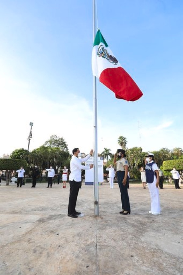 Acompañado de autoridades civiles y militares, Vila Dosal presidió este homenaje para recordar a las víctimas de este virus y en reconocimiento a la labor de los trabajadores del sector salud desde la Plaza Grande de Mérida, en el asta central izó la bandera nacional para rememorar esta fecha trascendental en la vida del país.