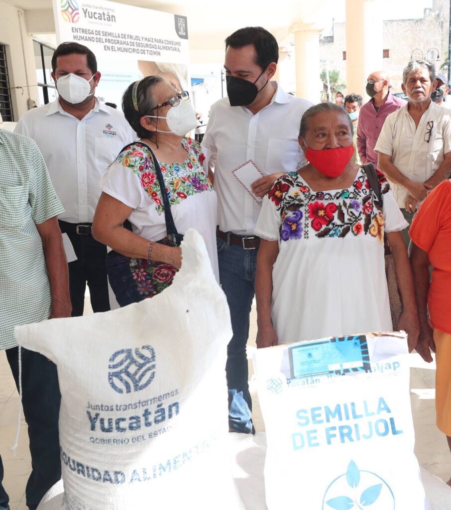 Durante una gira de trabajo por Tizimín, Vila Dosal entregó, junto con el alcalde, Pedro Couoh Suaste, diversos apoyos a la población como paquetes de semillas de frijol, maíz para consumo, de abeja reina a apicultores, certificados de vivienda social, sanitarios rurales y mobiliario nuevo para escuelas de primaria general e indígena de esta demarcación.