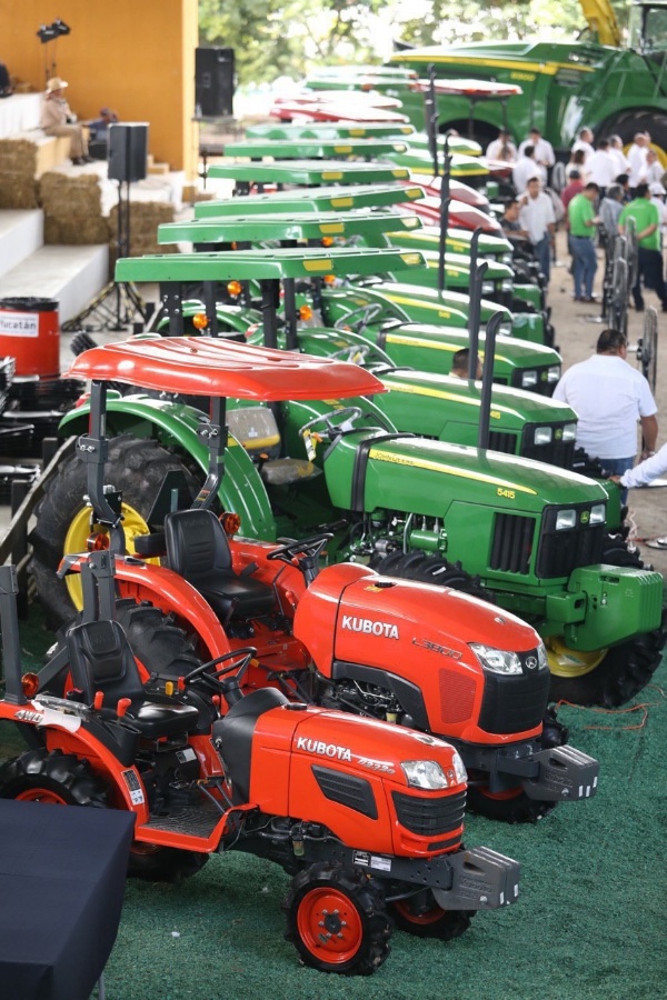 En el marco de la Feria Yucatán X’matkuil 2019, Vila Dosal y el subsecretario de Desarrollo Rural de la Secretaría de Agricultura y Desarrollo Rural (Sader), Salvador Fernández Rivera, distribuyeron dichos apoyos, en los que se aplicó una mezcla de recursos estatales y federales, que respaldan a 1,273 proyectos y acciones para la adquisición de implementos agrícolas equipamiento e infraestructura, así como el establecimiento de 425 hectáreas de henequén.