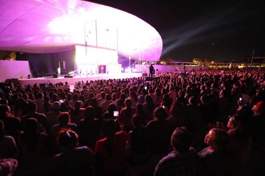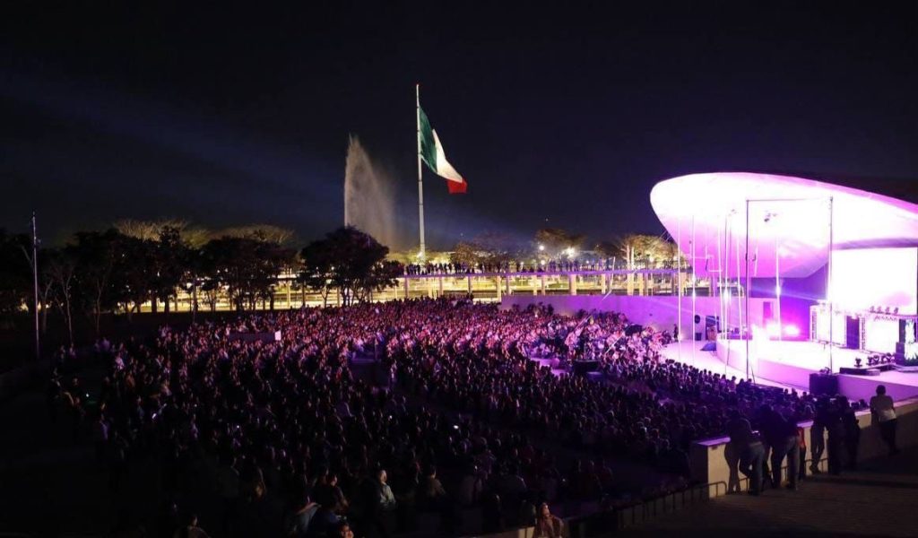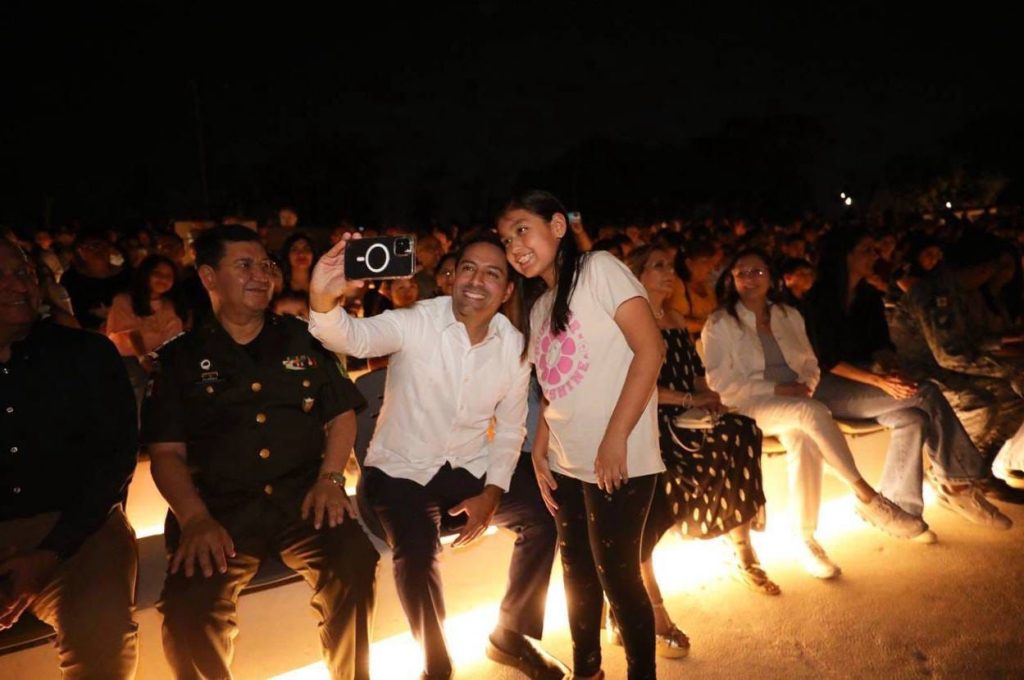 Acompañado del Alcalde de Mérida, Alejandro Ruz Castro y el comandante de la X Región Militar, General de División Ricardo Flores González, Vila Dosal, junto con el público presente, observó el espectáculo cultural de primer mundo en el que a través de números artísticos con aros, acrobacias en patines con luces neón y contorsionistas, se da a conocer las bellezas de México.